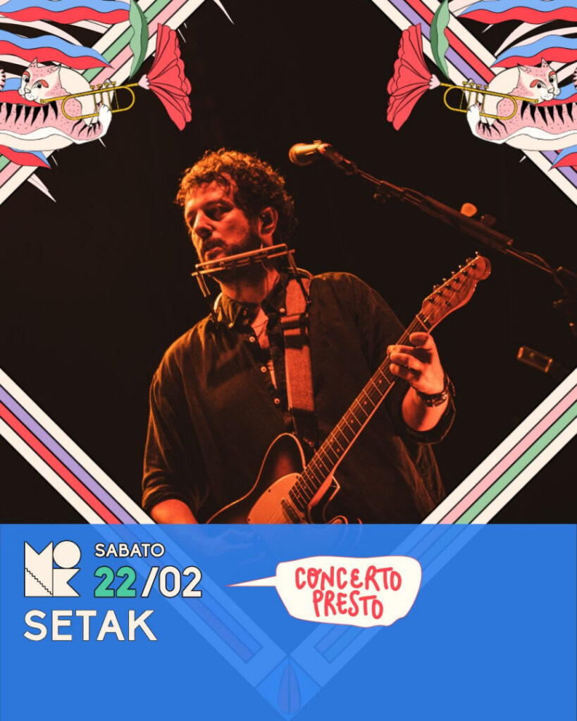 Con la sua chitarra e la sua voce, Setak, pseudonimo di Nicola Pomponi, incarna la quintessenza di una nuova coraggiosa musica d’autore italiana.