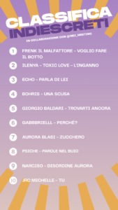 Ascolta la classifica completa ogni Sabato e Domenica alle ore 18 su Radio Indieffusione.