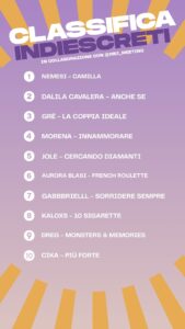 Ascolta la classifica completa ogni Sabato e Domenica alle ore 18 su Radio Indieffusione.