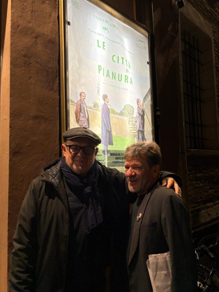 Oltre 100 spettatori al Cinema Sarti di Faenza all’ultimo giorno di programmaxione del film Le Citta’ di Pianura di Francesco Sossai distribuito da Lucky Red. Presentato da Pierpaolo Capovilla, uno dei protagonisti del film, e da Giordano Sangiorgi, patron del MEI, il pubblico ha applaudito entusiasta alla notizia che questo piccolo film indipendente ha superato oggi i 120 mila spettatori e sta sfiorando 1 milione di euro di incassi. Pierpaolo Capovilla ha avuto una calorosissima accoglienza viste anche le sue partecipazioni al MEI di Faenza che l ha visto sempre presente fin dalle prime edizioni.