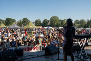 Foto del live al Marecchia Dreamfest, Rimini, concerto del 1 maggio. Data di uscita del singolo Manisfesti, che ha fatto il suo primo incontro col pubblico. Foto di Viola Macrelli