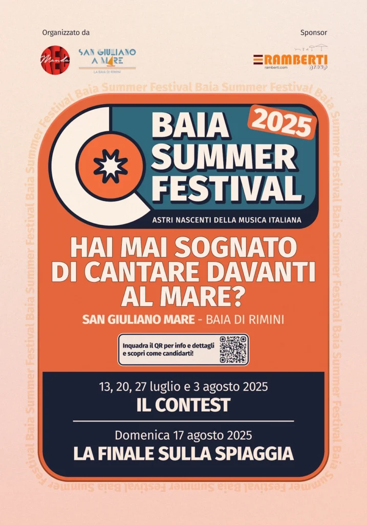 Mondo REC, in collaborazione con il Comitato Turistico San Giuliano Mare e Ramberti Group, annuncia l’apertura dei casting gratuiti per la prima edizione del BAIA Summer Festival, un evento dedicato alla musica emergente che si terrà dal 13 luglio al 17 agosto 2025 nella suggestiva Baia di Rimini.